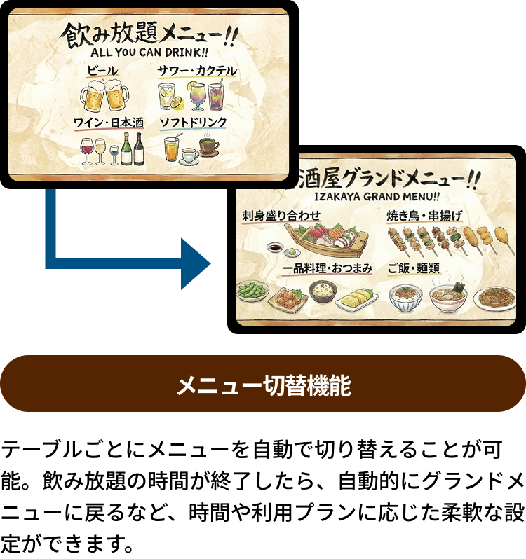 を一度に実現できる、居酒屋に最適な仕組みです。