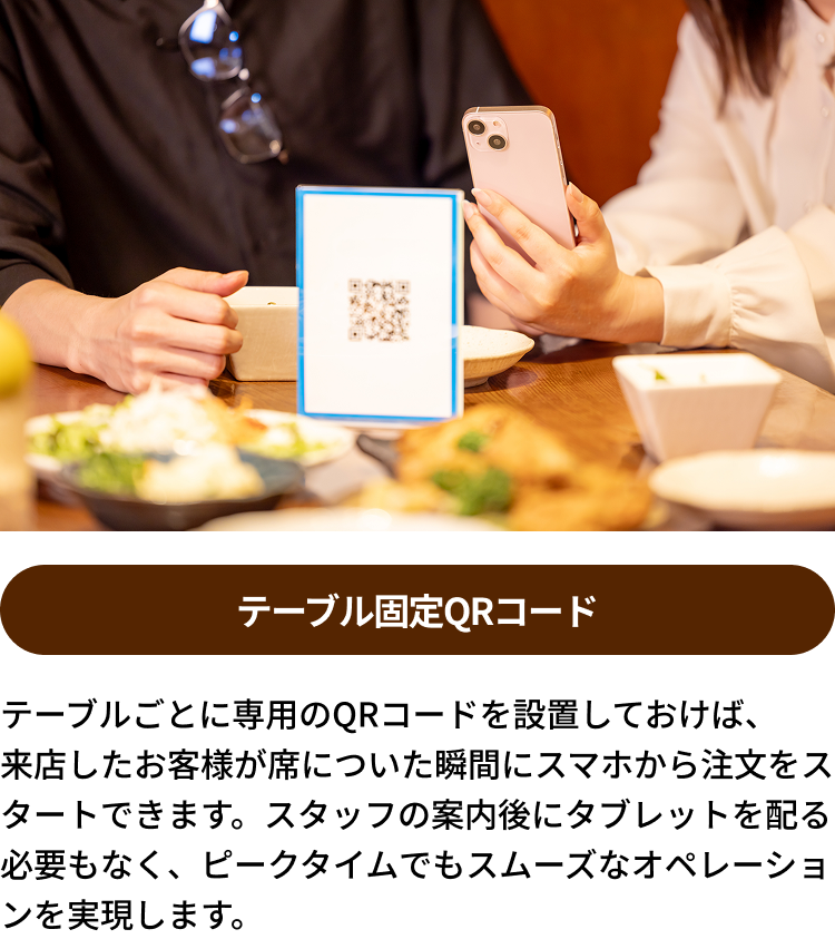 テーブルオーダーなら、お客様が席から直接注文できるため