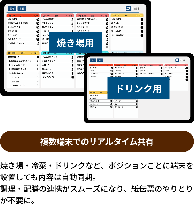 注文は即キッチンへ届くので、提供スピードが上がり回転率も向上します。
